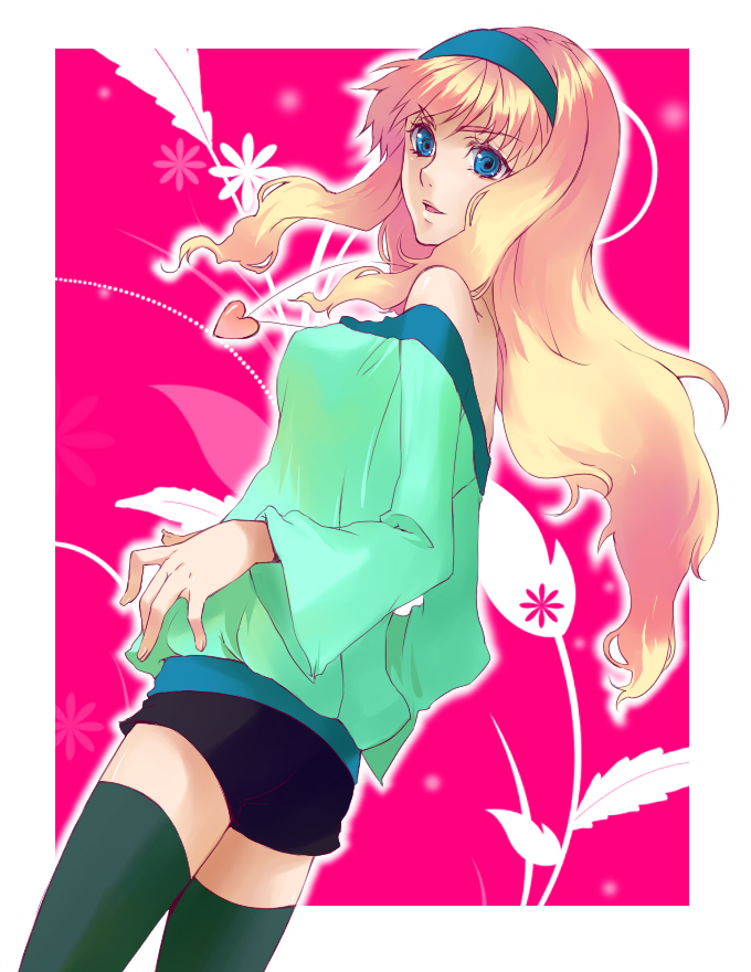 00sbare shouldersblonde hairblue eyesdutch anglehairbandheartjewelrylong hairnecklacesolothighhighs