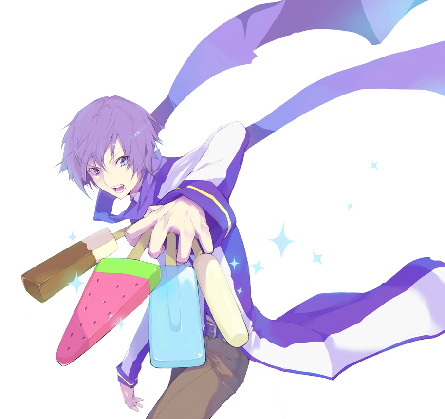 1boybetween fingersblue eyesblue hairblue scarffoodholdingice creammale focusmatching hair/eyespopsiclescarfsimple backgroundsolosparklewatermelon barwhite background