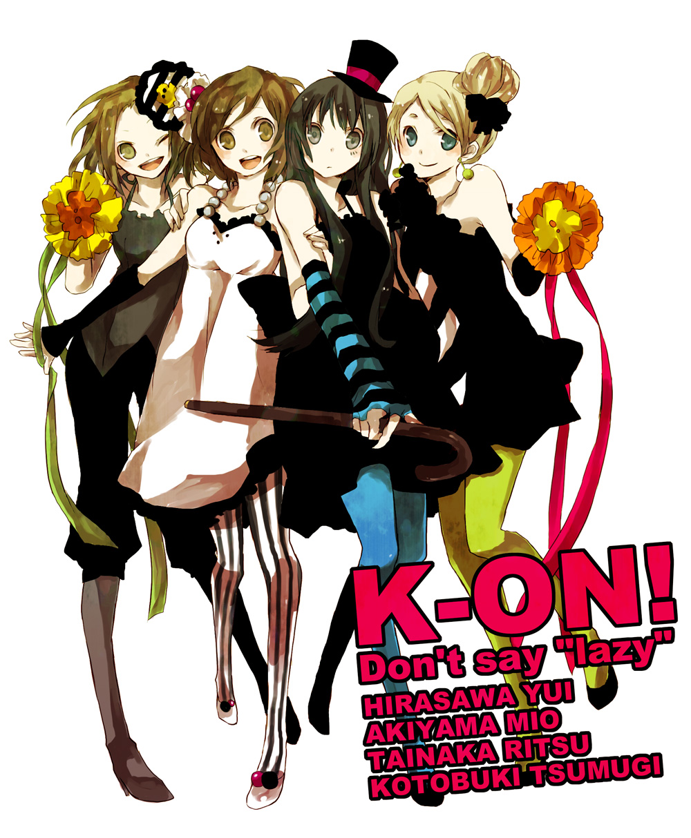 00s4girlsblonde hairblue pantyhosebrown haircanedresselbow glovesglovesgreen pantyhosehair bunhappyhatho-kago tea timelong hairmultiple girlsone eye closedpantyhoseshort hairsingle hair bunstriped clothesstriped pantyhosevertical-striped clothesvertical-striped pantyhosewink