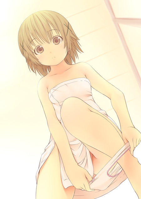 00s1girlbare shouldersbowbow pantiesbrown eyesbrown hairdressingfemale focusnaked towelpantiespanties around legpanty pullshort hairsolotowelunderwearundressingwhite panties