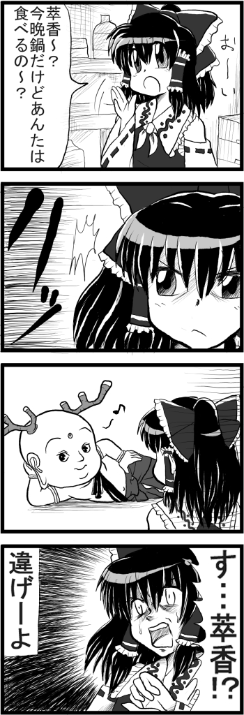 2girls4komacomicfemale focusgreyscalehornsjapanese clotheslong hairmikomonochromemultiple girlsponytailribbonshort hair