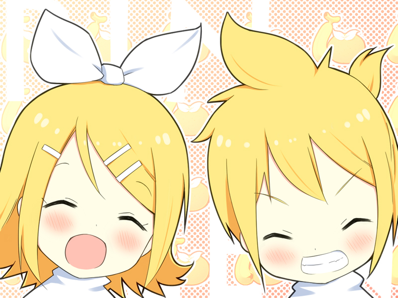 1boy1girlblonde hairblushbowbrother and sisterclosed eyesgrinhair bowhair ornamenthairclipshort hairsiblingssmiletwins