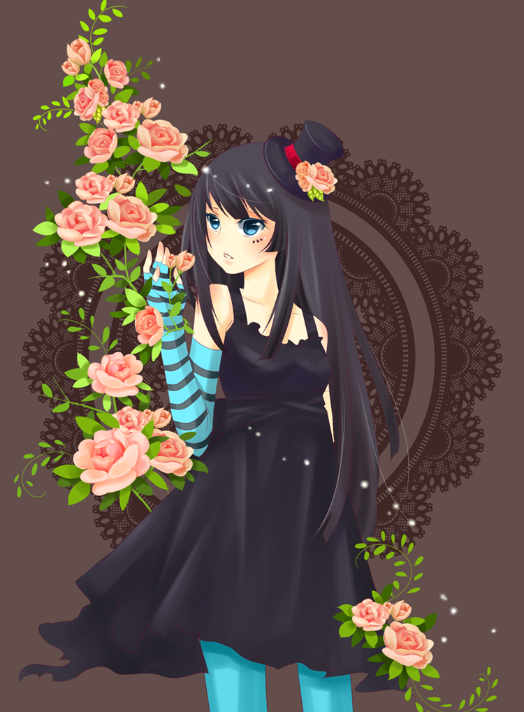 00s1girlaqua pantyhoseblack hairblue eyesblue pantyhosedresselbow glovesfacepaintfemale focusfingerless glovesgloveshatlong hairmini hatmini top hatpantyhosesolotop hat