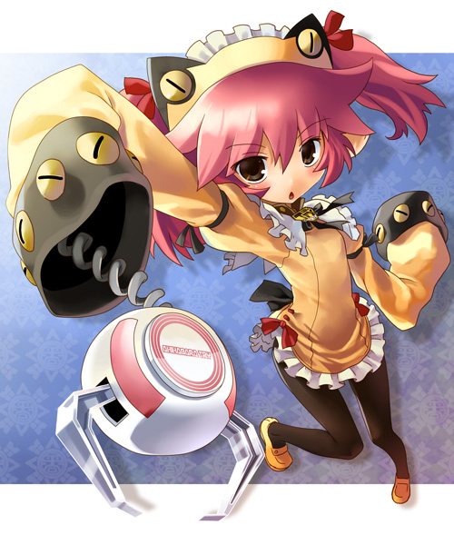 ubizo, kogami akira, shiraishi minoru, lucky star, translation request, 00s, 1boy, 1girl, ahoge, bare legs, eating, grey pantyhose, long sleeves, oversized clothes, pajamas, pantyhose, pink hair, raglan sleeves, short hair, unworn pantyhose