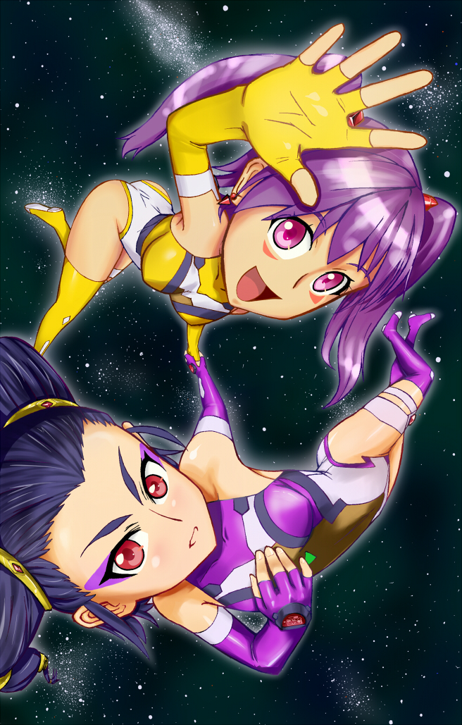 :d00s2girlsarm uparmpitsassbare shouldersbent overblack hairbodysuitbootsbreastscovered naveldutch angleearringselbow gloveseyeshadowfacial markfloatingforeshorteningfrom abovegloveshair ornamenthalterneckhand on own chestholding handsjewelryleg liftleotardlooking at viewermakeupmedium breastsmulti-tied hairmultiple girlsopen mouthoutdoorsoutlineoutstretched armpurple eyespurple glovespurple hairred eyessidelocksskysmilespacestar (sky)starry skythigh bootsthigh strapthighhighstwintailswavingyellow boots