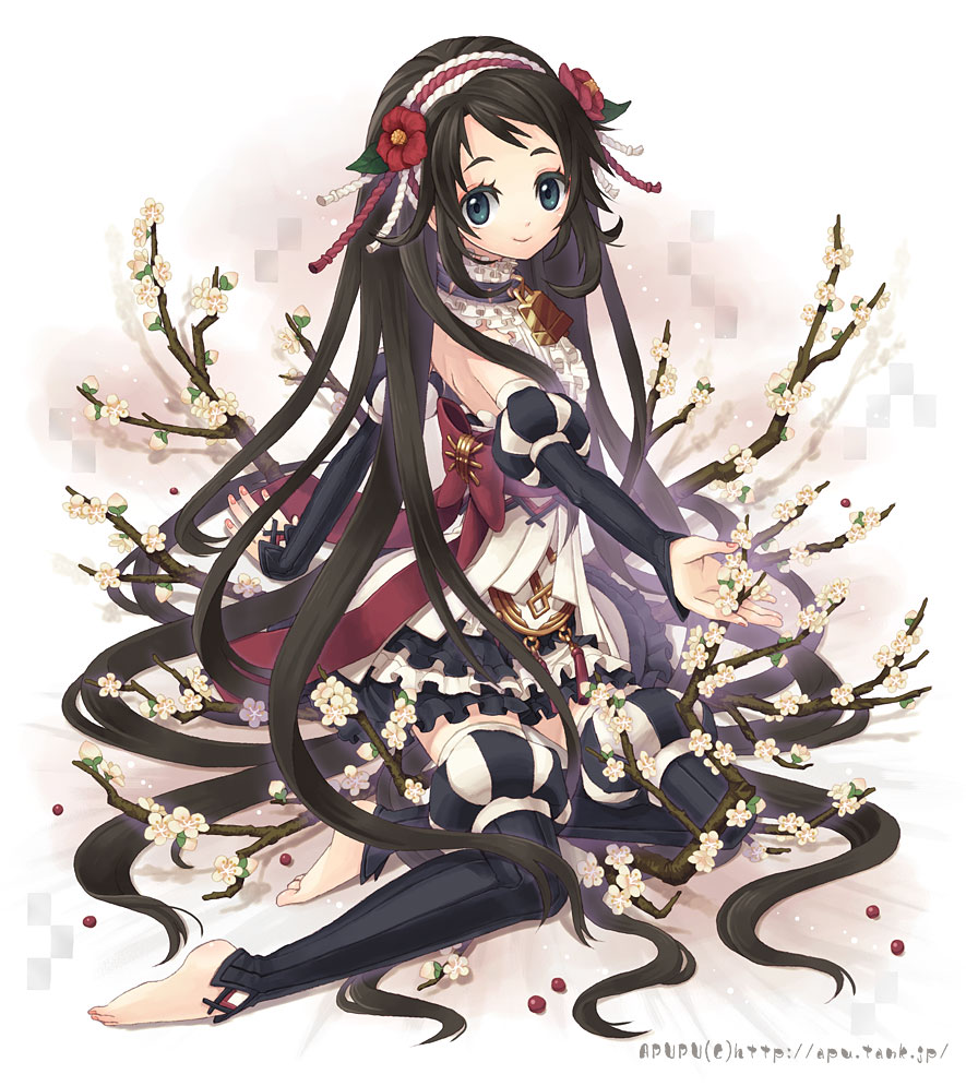 c.c., code geass, non-web source, 00s, 1girl, bare shoulders, female focus, green hair, long hair, solo, thighhighs, zoom layer
