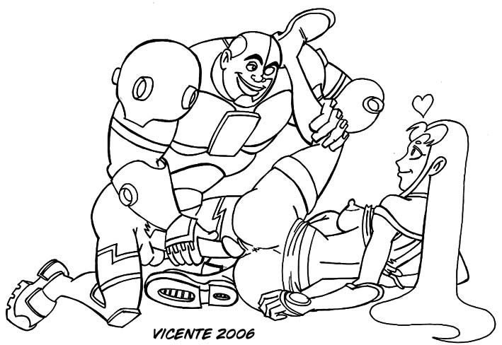 kimura takahiro, gaogaigar, genesic gaogaigar, swan white, yuusha ou gaogaigar, yuusha series, 1990s (style), 1girl, blonde hair, blue eyes, breasts, dress, female focus, large breasts, long hair, looking at viewer, mecha, narrow waist, retro artstyle, robot, short dress, solo, super robot, thighhighs, zettai ryouiki