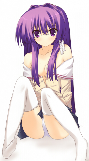 00s1girlbare shouldersbreastscleavagefemale focuslong hairmedium breastspantiespantyshotpurple eyespurple hairschool uniformsimple backgroundsittingsolothighhighsunderwearundressing