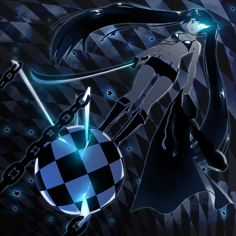 10s1girlbeltbikinibikini top onlyblack hairblue eyesbootschaindarkdutch anglefemale focusflat chestfront-tie topglowingglowing eyeglowing eyesjacketkatanaknee bootslong hairmidriffnavelorbpale skinshort shortsshortssolostar (symbol)swimsuitswordtwintailsuneven twintailsvery long hairweapon