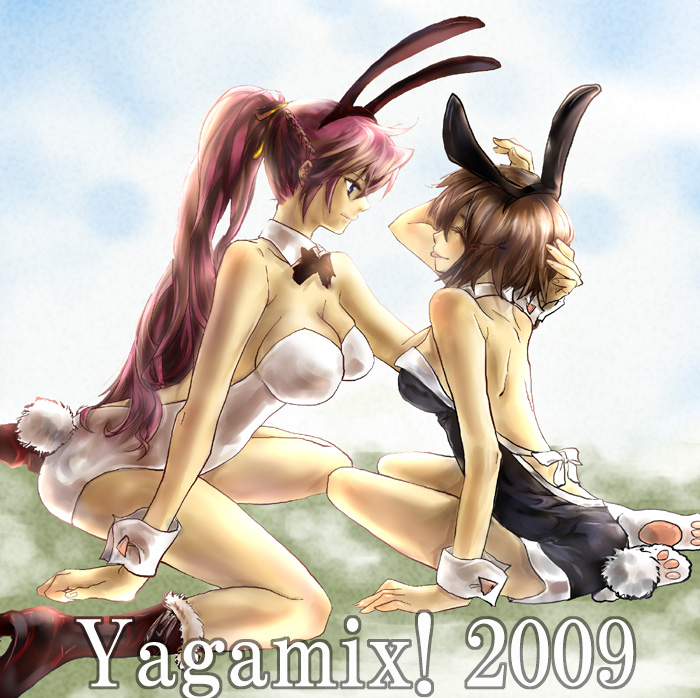:p00s2girlsalternate costumeanimal earsbare armsbare backbare legsbare shouldersblack bowblack bowtieblue eyesbowbowtiebreastscleavageclosed eyesclosed mouthcouplefake animal earshair between eyeshigh ponytaillarge breastsleotardlong hairlooking at anothermedium breastsmultiple girlsneckpink hairplayboy bunnyponytailrabbit earsrabbit tailshort hairsittingsmilestraplessstrapless leotardtailthick thighsthighstonguetongue outwrist cuffsyuri