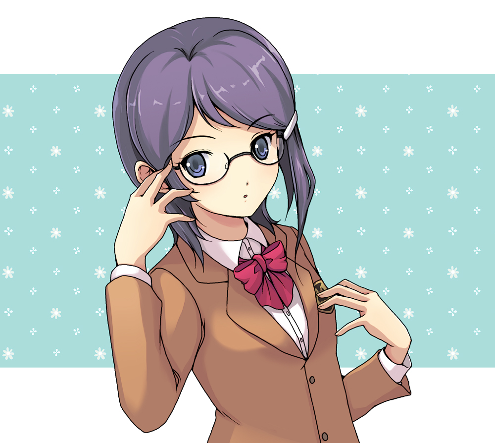 00s1girladjusting eyewearblue eyesfemale focusglasseshair ornamenthairclippurple hairschool uniformsolo