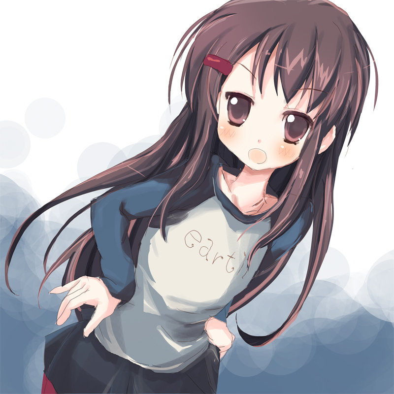 00s1girlblushbrown eyesbrown hairfemale focushair ornamenthaircliplong hairpantyhoseraglan sleevesskirtsolo