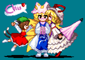 3girlsanimal earsanimal hatblonde hairblushbrown haircat earscat girlcat tailclosed umbrellafemale focusfox tailhands in opposite sleeveshatholdingholding umbrellalong sleevesmob capmultiple girlsmultiple tailsparasolpixel artshort hairtailumbrellawide sleeves