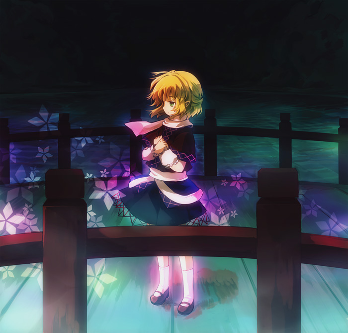 1girlarm warmersblonde hairbridgefemale focusgreen eyesmary janesoutdoorspointy earsscarfshoesshort hairsockssolo