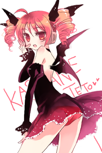 1girlassbat wingsblushdemondemon girldrill hairfemale focuspantiespantyshotpink hairred hairskirtsolotailtwin drillstwintailsunderwearupskirtwings