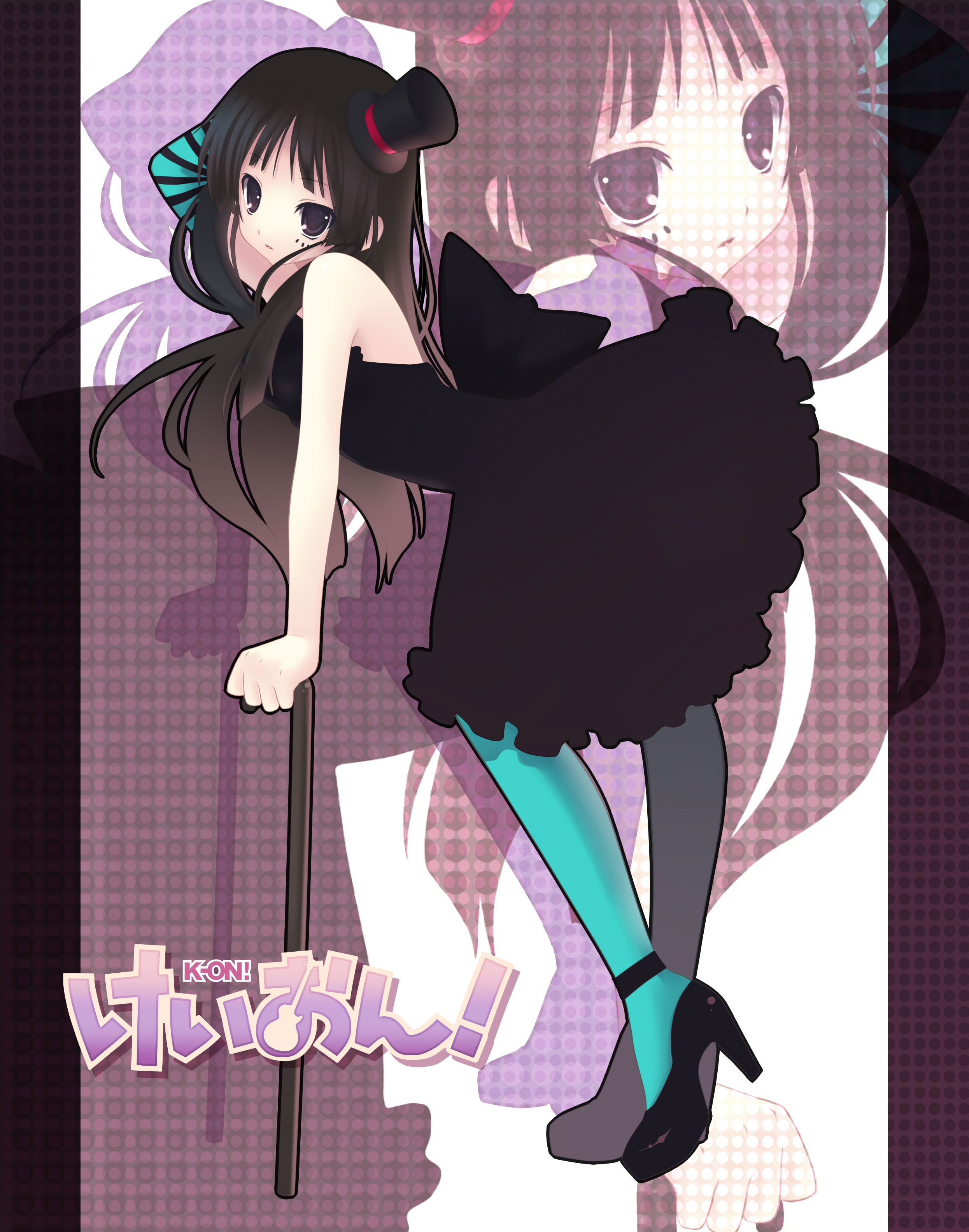 00s1girlaqua pantyhosebare shouldersblack dressblack hairblue eyescanedressfemale focusgloveshathigh heelslong hairmini hatmini top hatpantyhoseshoessingle glovesolostriped clothesstriped glovestop hatzoom layer