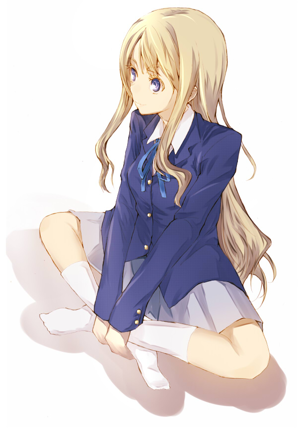 00s1girlblonde hairblue eyescrossed legsfemale focusfull bodyindian stylekneehighslong hairschool uniformsittingsockssolowhite backgroundwhite socks