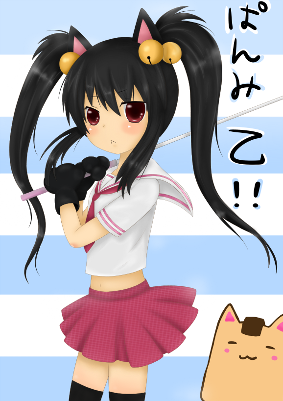 :3animal earsblack hairblack thighhighscat earschildglovesgolf clublong hairpleated skirtsailorschool uniformserafukuskirtsolothighhighstwintails