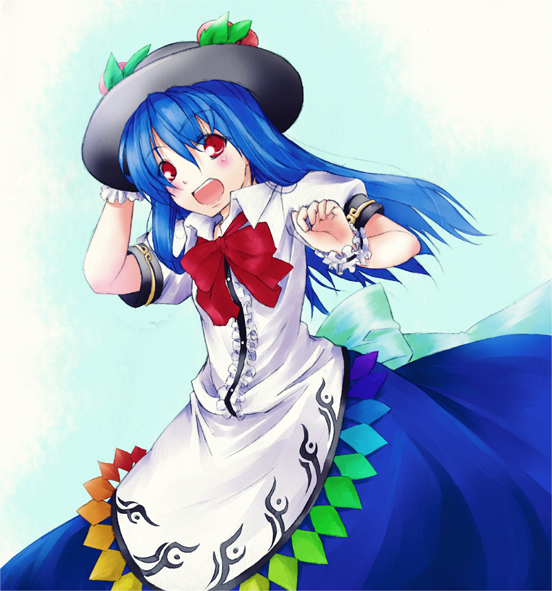 dairi, yuiman asama, fossilized wonders, touhou, commentary request, large variant set, variant set, 1girl, alphes (style), barefoot, blue dress, blush, crescent, dress, eye of providence, full body, grey hair, hair between eyes, hands up, long hair, long hair between eyes, parody, play button, ribbon around body, sleeveless, sleeveless dress, snake, solo, star (symbol), style parody, tachi-e, torn clothes, torn dress, triangle