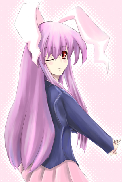 1girlanimal earsblazerfemale focusjacketlong hairone eye closedpurple hairrabbit earsred eyessolowink