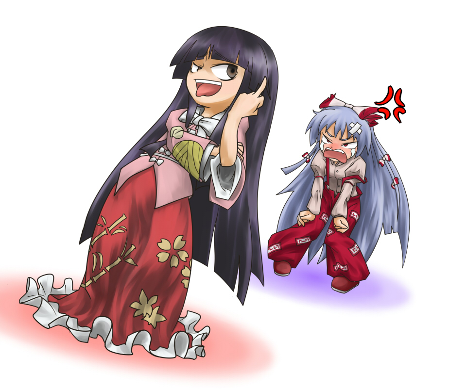 2girlsanger veinangryblack hairblunt bangsfemale focusgrey hairlong hairmiddle fingermultiple girlstearstongue