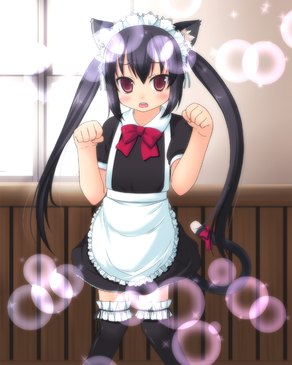 00s1girlalternate costumeanimal earsblack hairblushbubblecat earscat tailenmaidedfemale focusflat chestfrilled thighhighsfrillslong hairmaidmaid headdresspaw posered eyessidelockssolosparkletailthighhighstwintailszettai ryouiki