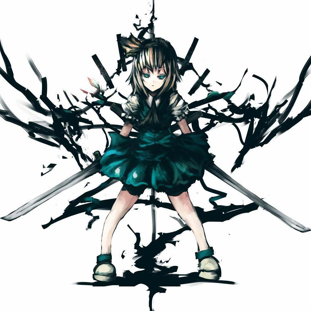 jitsu hidari, original, bare shoulders, bokken, dress, hair ornament, solo, sword, weapon, wooden sword