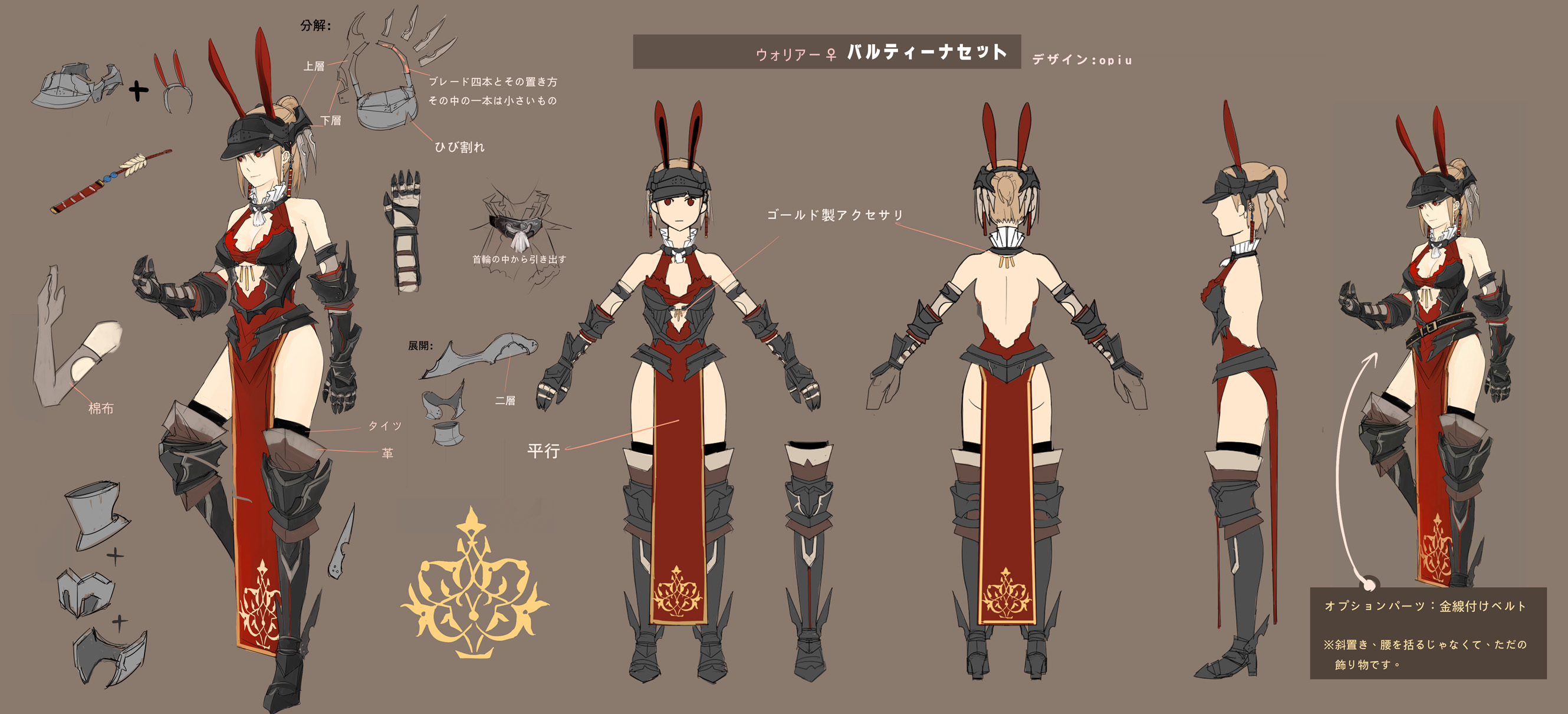 1girlanimal earsarmorbare shouldersblonde hairgauntletshelmetmultiple viewsrabbit earsred eyesreference sheetshort hairsketchthighhighsturnaround
