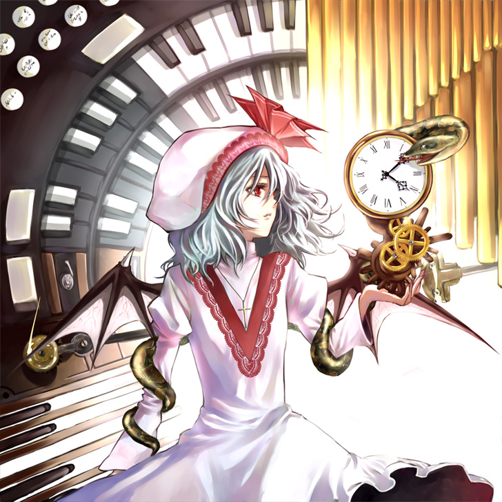 1girladapted costumeafloatanimalbacklightingbat wingsclockcrosscross necklacedressfemale focusfingernailsfloatinggearsgradient clothesgradient dresshathat ribboninstrumentjewelryjuliet sleeveslong sleeveslooking to the sidemob capnecklaceparted lipspink dresspuffy sleevesred eyesribbonroman numeralsharp fingernailsshort hairsnakesolotonguetongue outturtleneckvampirewings