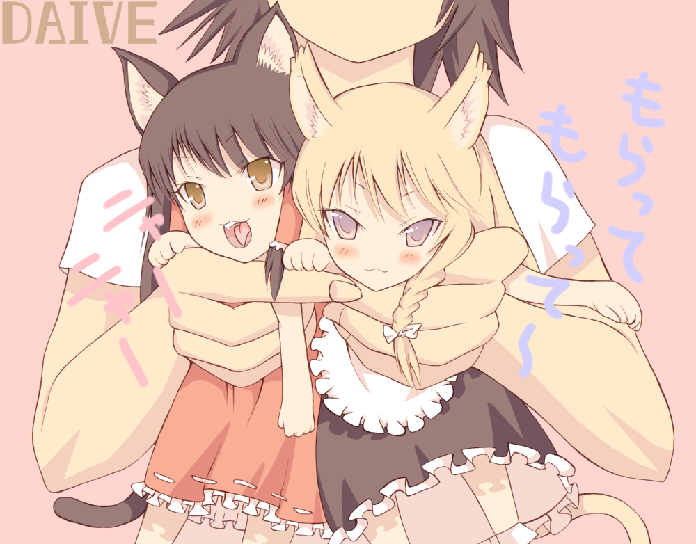 :32girlsanimal earsblonde hairblushbrown eyesbrown haircat earscat girlcat tailchibifangfemale focusjapanese clotheskemonomimi modemikomultiple girlsnaughty faceopen mouthpurple eyestailtonguev-shaped eyebrows