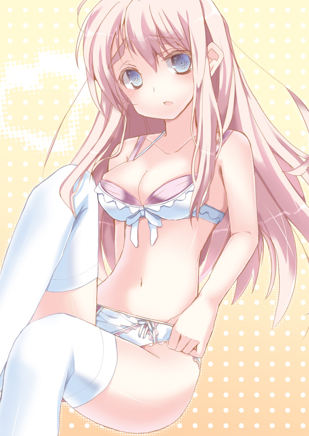 00s1girlblonde hairblue eyesbrafemale focuslingerielong hairpantiessolothighhighsunderwearunderwear onlywhite thighhighs
