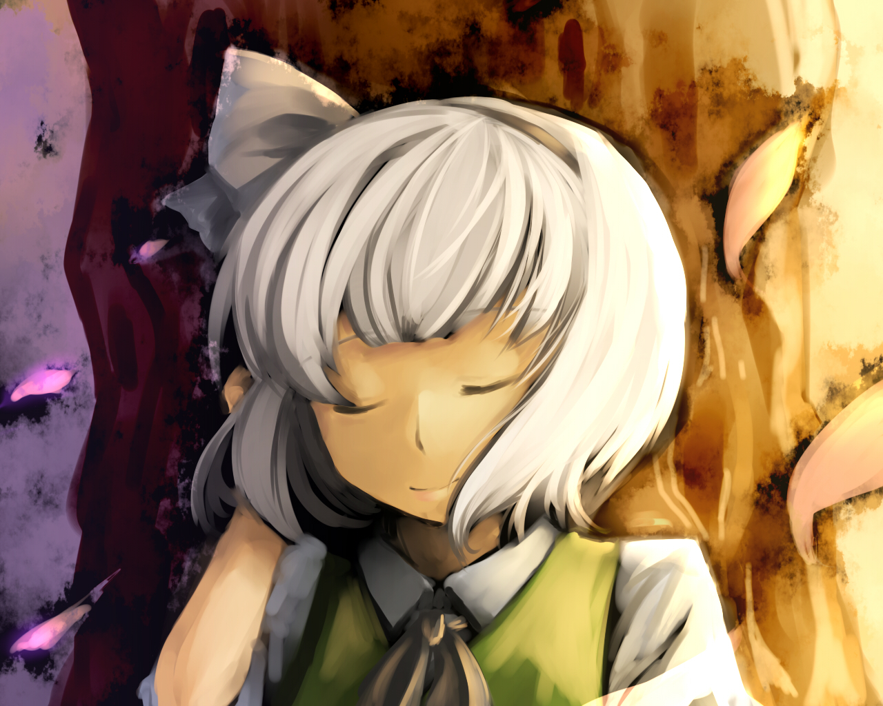 kikanngenntei, nanakusa nichika, idolmaster, idolmaster shiny colors, commentary request, highres, 1girl, bow, bowtie, cropped torso, green eyes, green hair, grey bow, grey bowtie, grey sweater vest, hand on own cheek, hand on own face, school uniform, shirt, short hair, short sleeves, simple background, solo, summer uniform, sweater vest, upper body, white background, white shirt
