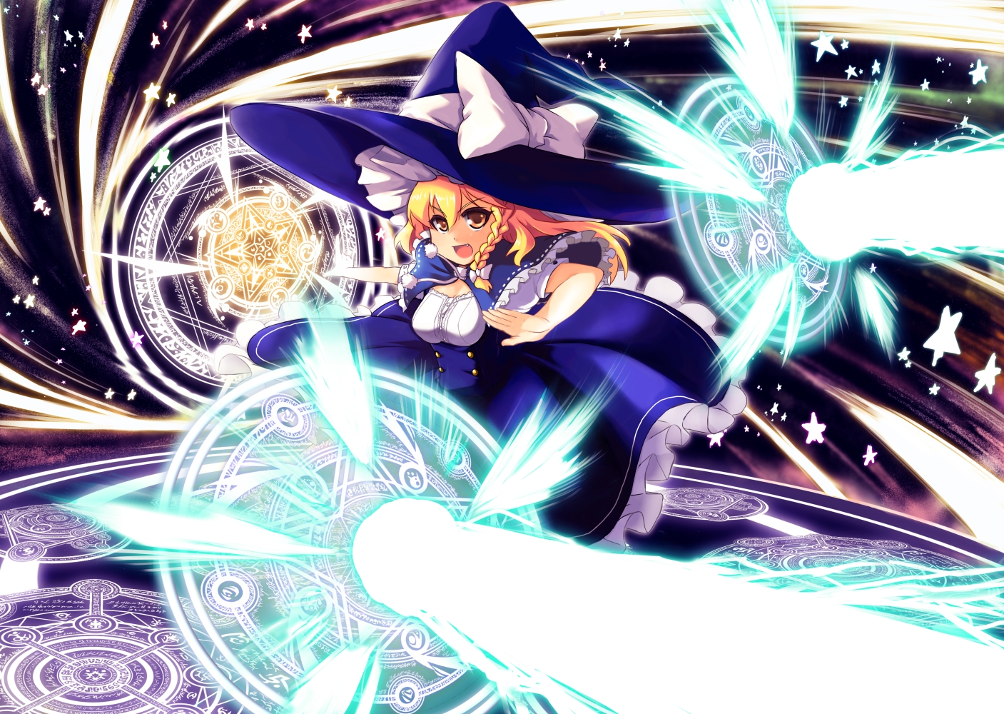 1girlblonde hairbraidbreastsdressfemale focushatmagicmagic circleshort hairsolostar (symbol)witchwitch hatyellow eyes
