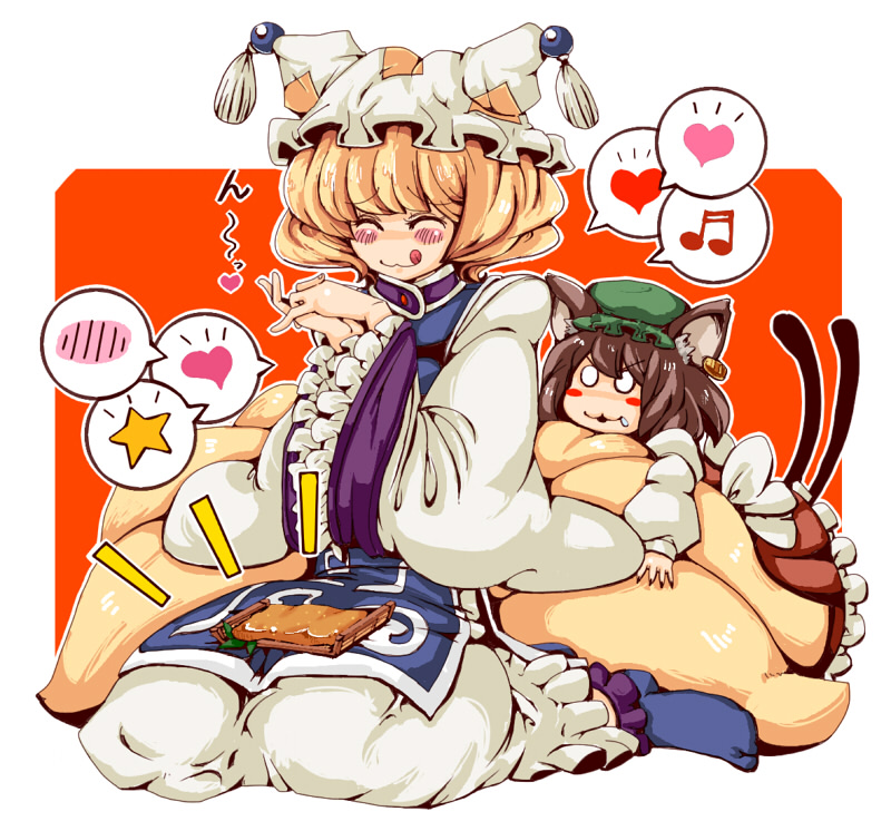 :q2girlsaburaageanimal earsblonde hairbrown haircat earscat girlcat tailearringsfemale focusfoodfox tailhathearthugging tailjewelrymultiple girlsmultiple tailsmusical noteshort hairstar (symbol)tailtofutonguetongue out