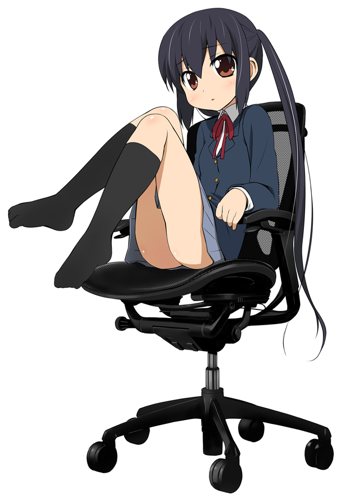 00s1girlblack hairbrown eyeschairfemale focusfull bodykneehighslegslong hairneck ribbonon chairred ribbonribbonschool uniformskirtsockssolothighstwintailswhite background