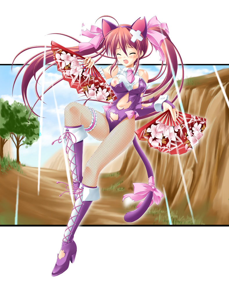 animal earsblushbootsbreastsbrown haircat earscat tailcliffclosed eyesdual wieldingfishnet pantyhosefishnetsfolding fanfrilled thigh straphand fanholdinglight rayslingerielong hairnecktienipplespantyhoseribbonsolosunbeamsunlighttailtail ornamenttail ribbonthigh straptorn clothestwintailsunderwear