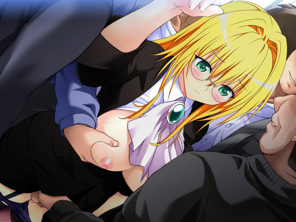 blonde hairblushbreastsbreasts outsidechikanfingeringFlag for Deletionglassesgreen eyesgropingmolestationnipplesstandingtraintrain interior