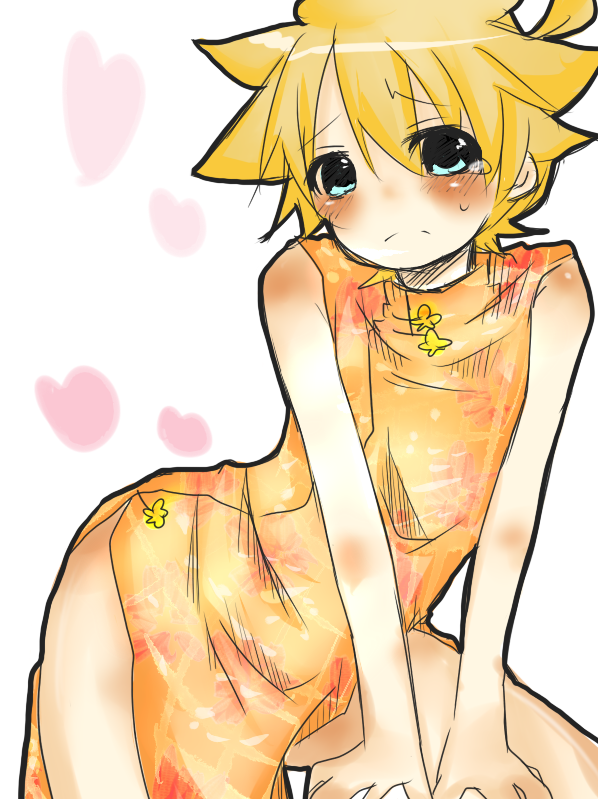 1boyblonde hairblue eyesblushchina dresschinese clothescrossdressingcrossdressing (mtf)dressmale focusshort hairsolotearstrap