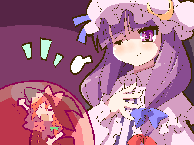 1boy2girlsblonde hairbowcrescentcrescent moonfemale focushair bowhand on another's chesthand on own chesthand uphatlong hairmoonmultiple girlsoekakione eye closedopen mouthpurple eyespurple hairsmilewinkwitchwitch hat