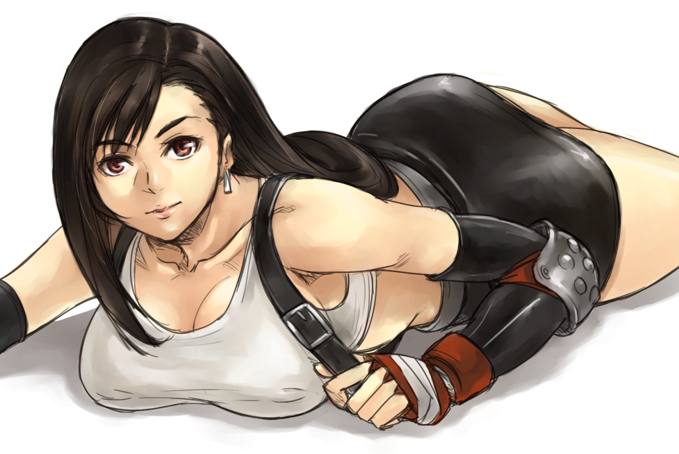 1990s (style)1girlbreastsbrown eyesbrown haircleavagecollarboneearringsfemale focusfingerless glovesgloveshuge breastsjewelrylong hairlyingminiskirtpencil skirtretro artstyleshirtskirtsolotaut clothestaut shirt