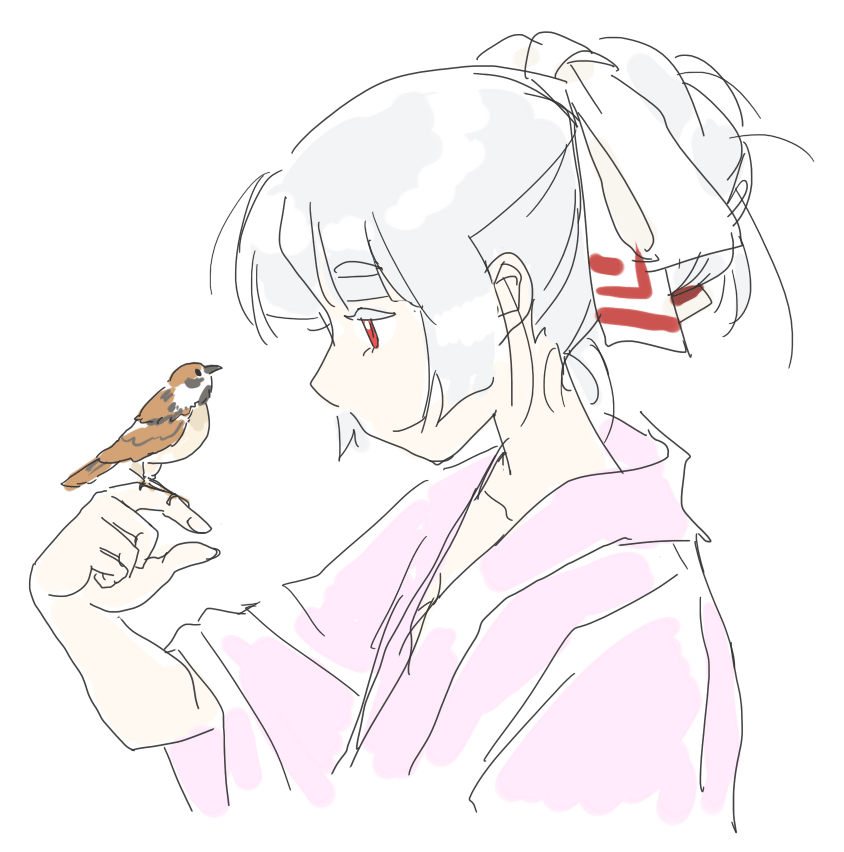 1girlalternate hairstylebirdbird on handfemale focushair ribbonhair uplong hairred eyesribbonsmilesolosparrow
