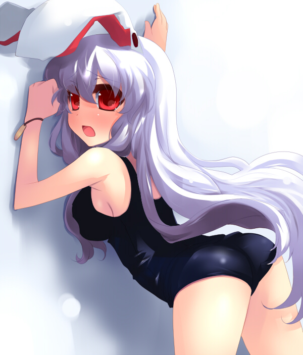 1girlanimal earsassblack one-piece swimsuitbreastsfemale focusone-piece swimsuitrabbit earsred eyesschool swimsuitsideboobsoloswimsuit