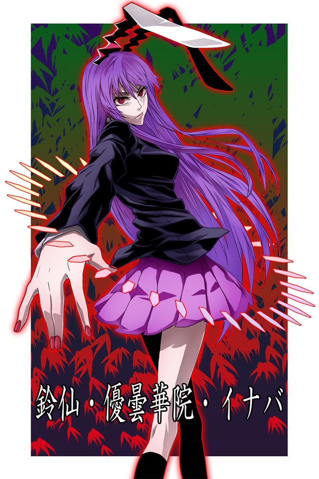 1girlanimal earsblazerbulletdanmakufemale focusforestjacketlong hairnail polishnaturepleated skirtpurple hairrabbit earsred eyesred nailsskirtsolo