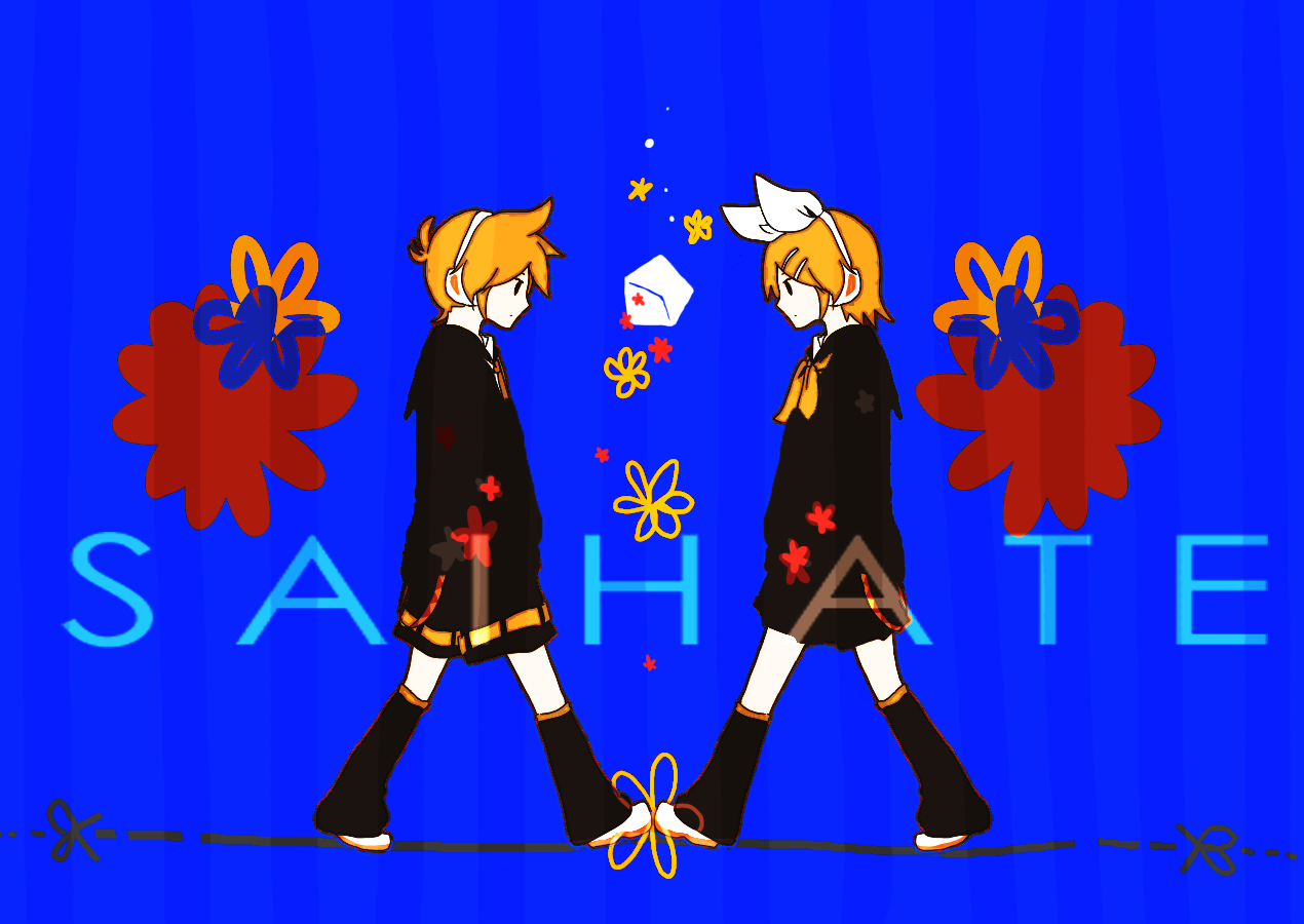 1boy1girlblonde hairbrother and sisterformal clotheshair ornamenthair ribbonhairclipheadphonesnecktieribbonshort hairshortssiblingstwins