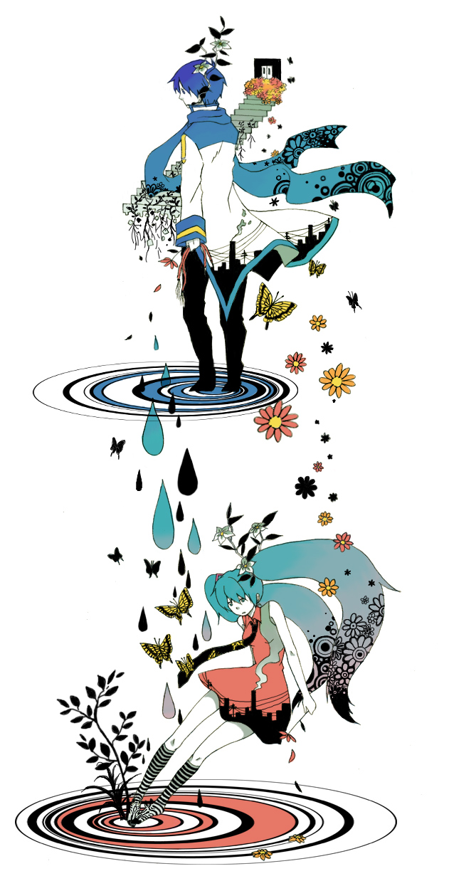 aqua hairblue hairbugbutterflydaisy (flower)dressflowerinsectlong hairnecktiescarfsocksstriped clothesstriped sockstwintailswater