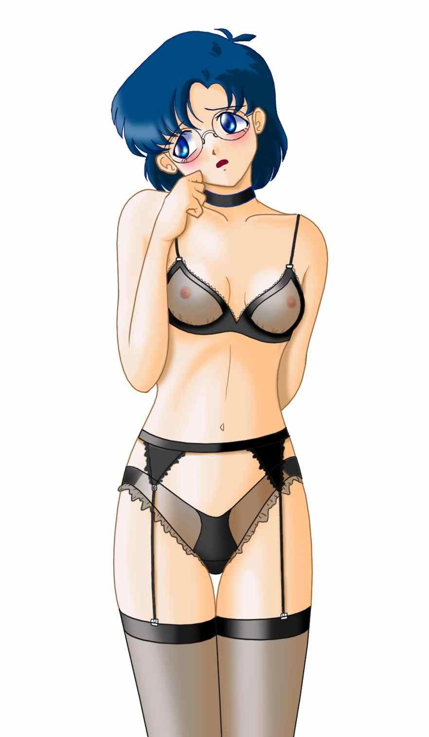 1990s (style)1girlblack brablack pantiesblue eyesblue hairblushbrabreastsembarrassedglasseslingeriematching hair/eyesnipplespantiessee-through clothesshort hairsmall breastssolounderwear