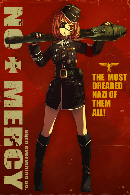 1girlarmbandbeltblack bootsblack hatblack nailsbootscigarettecollared jacketcrosscross pattyenglish texteyepatchfemale focusgarrison capglovesgunhandgunhathigh-explosive anti-tank (warhead)holdingholding behind backholding rocket launcherholding weaponholding weapon behind backiron crossjacketman-portable anti-tank systemsmilitarymilitary dress uniformmilitary jacketmilitary uniformnail polishnazipanzerfaustpistolrecoilless gunred armbandred backgroundrocket launchersolotext focusweapon