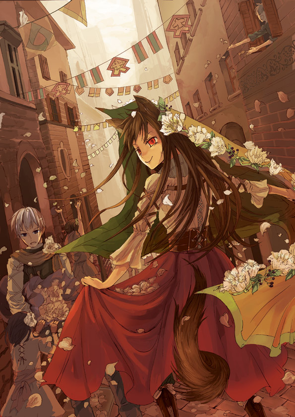 00sanimal earsblack eyesbrown hairchilddressflowerlong hairlooking backpetalsred eyesshort hairskirttailwindowwolf ears