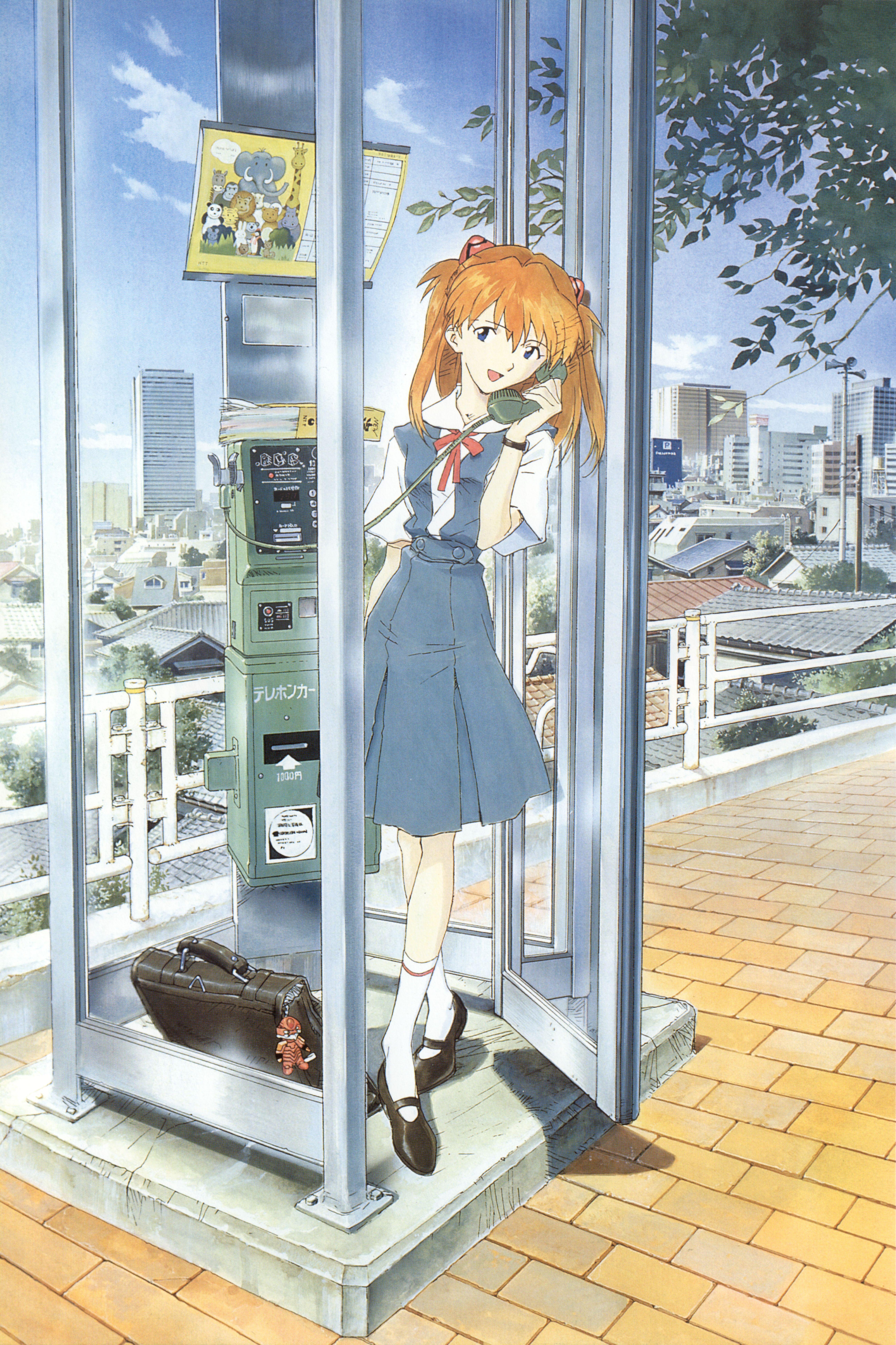 1girlbagblue eyescitycorded phonefemale focusphonephone boothred hairschool bagschool uniformsolotalking on phonewatchwristwatch