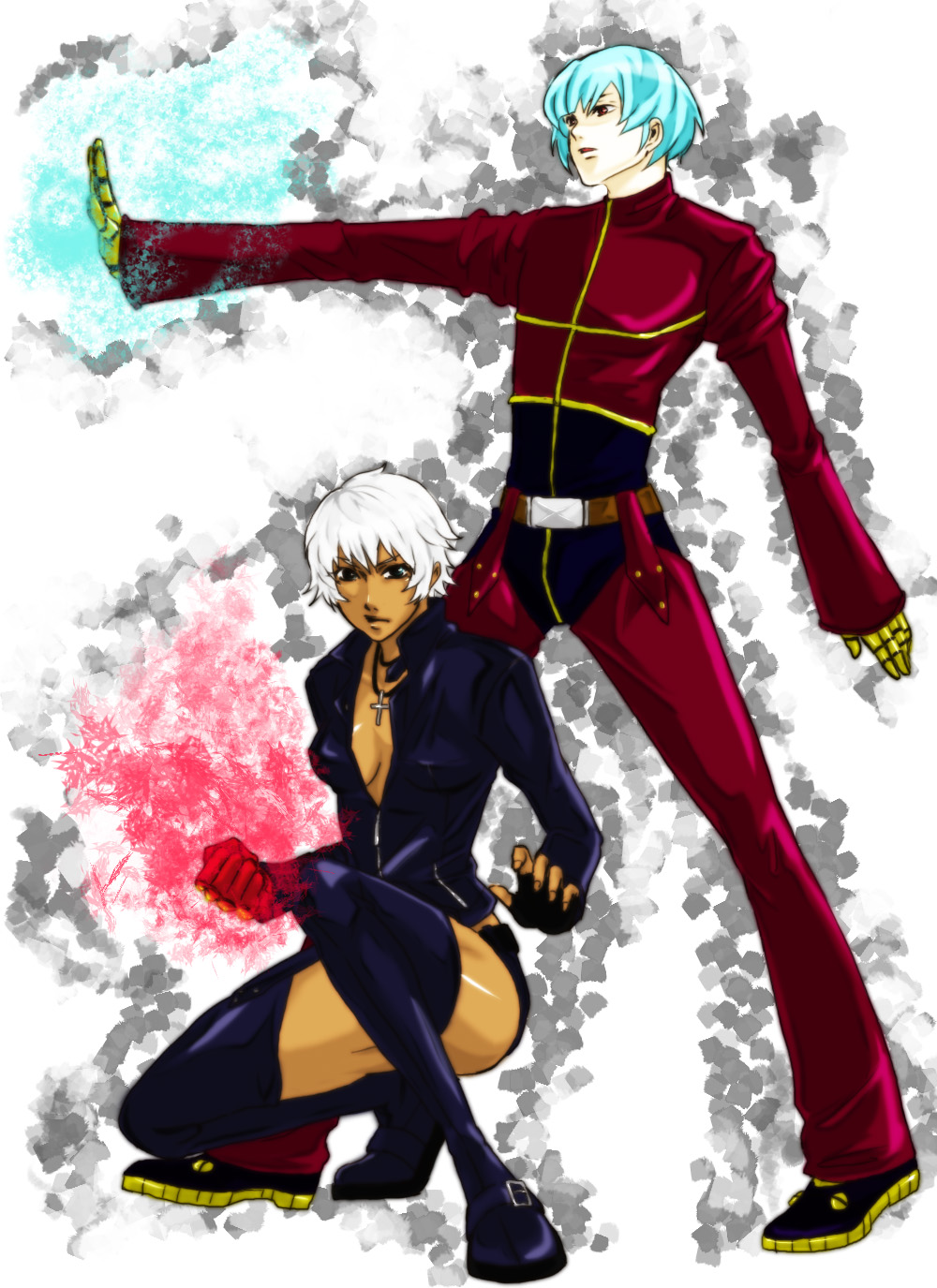1boy1girlblue haircryokinesisfiregenderswapgenderswap (ftm)genderswap (mtf)interracialpyrokinesisshort hairthighhighswhite hair